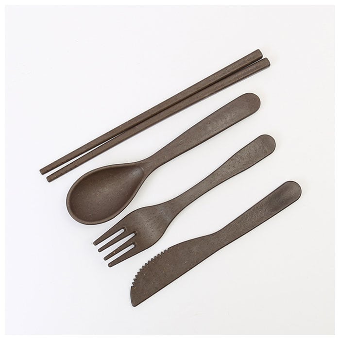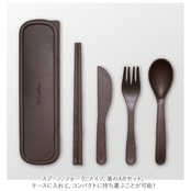 ・スプーン、フォーク、ナイフ、箸の4点セット。ケースに入れて、コンパクトに持ち運ぶことが可能!