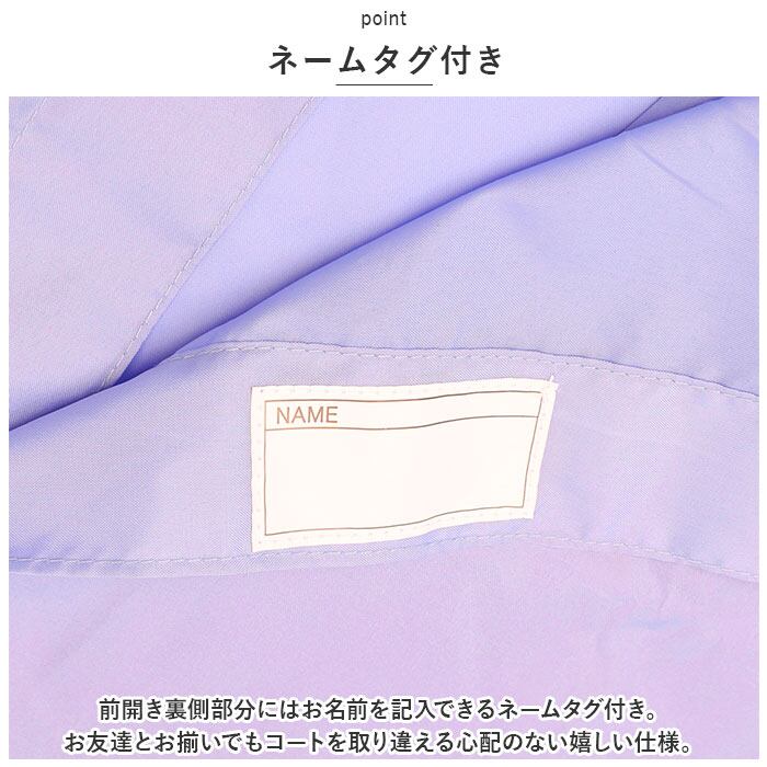 ・前開き裏側部分にはお名前を記入できるネームタグ付き。お友達とお揃いでもコートを取り違える心配のない嬉しい仕様。