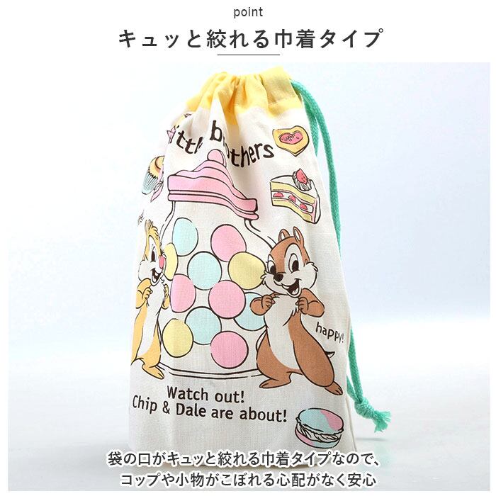 ・袋の口がキュッと絞れる巾着タイプなので、コップや小物がこぼれる心配がなく安心。