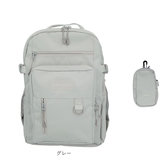 ・アウトポケットの前面には縦型のファスナーポケット×1とDカン×1。内側はオープンポケット×4、メッシュポケット×1、ナスカン×1を装備した小物収納に適したつくり。
