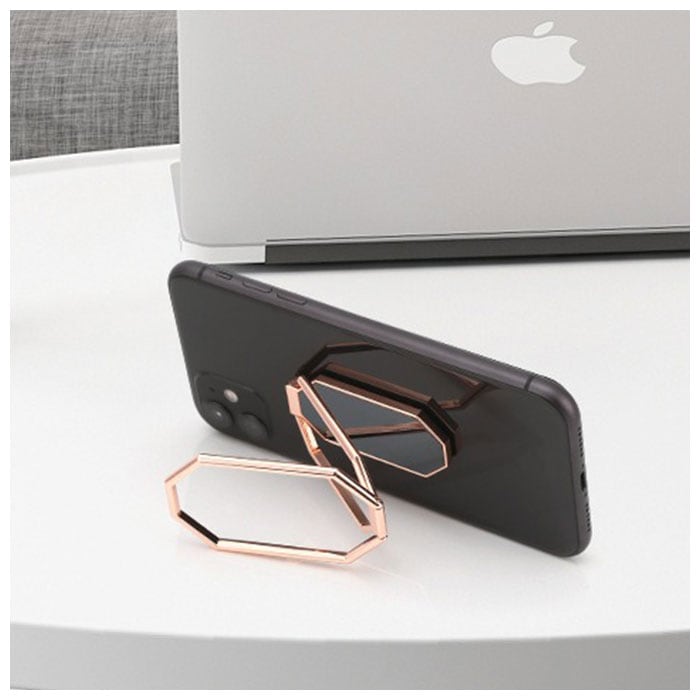 3つに折りたたまれたリングのフレームを開けば、スマホスタンドに変身!より快適な動画視聴やリモート会議を実現。