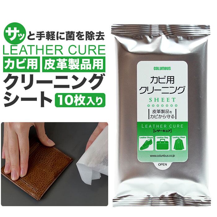 クリーニングシート 通販 レザーキュア 10枚入り 汚れ落とし カビ用 カビ 抑制 菌 汚れ 除去 革 レザー 保管 使い切り 手軽 皮革製品 抗菌 梅雨