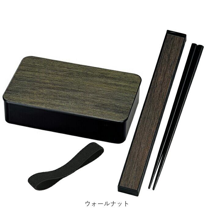 ・カジュアルな木目調カラーの箸箱と、シンプルなブラックカラーのお箸セット。