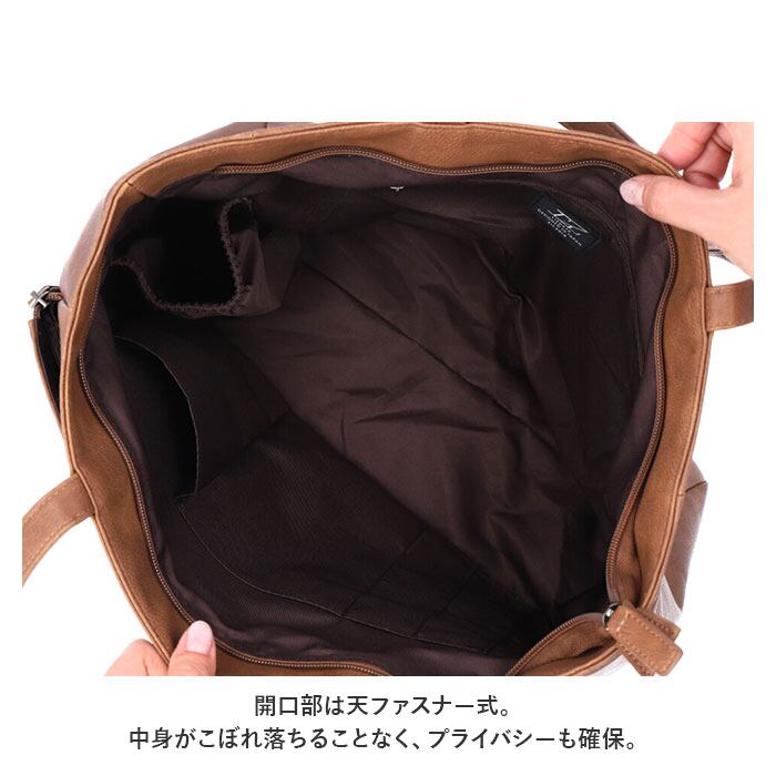 ・開口部は天ファスナー式。中身がこぼれ落ちることなく、プライバシーも確保。