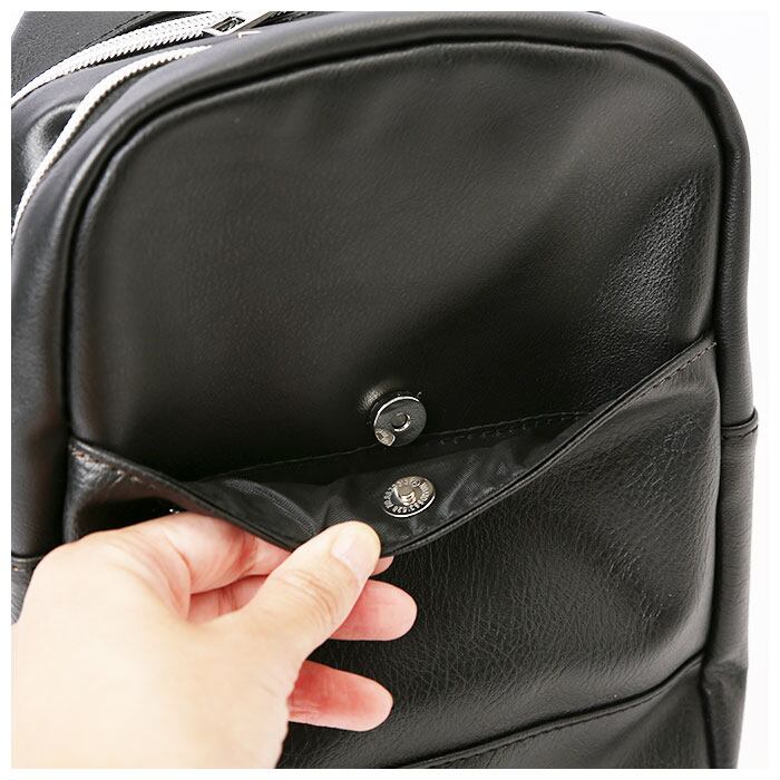 ・パスケースサイズの縦型ファスナー、スマホをサッと取り出すことのできるマグネット式ポケットをバッグ前面に配置し、収納ポケットが充実。