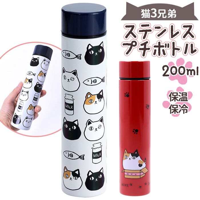 ・お澄まし顔のまんまるシルエットに癒される♪大人気「猫3兄弟」シリーズに、軽量200mlステンレスプチボトルが仲間入り!