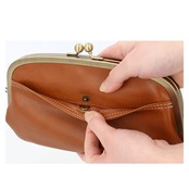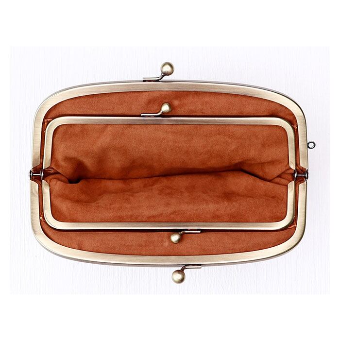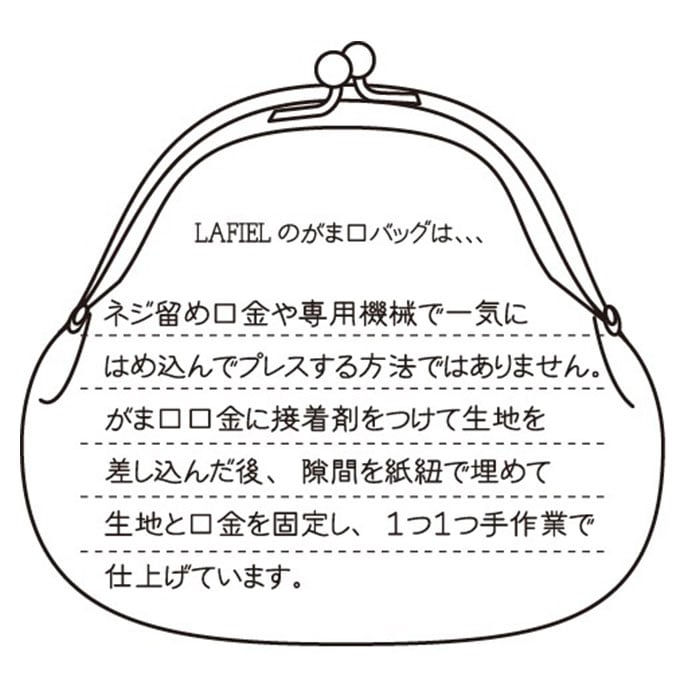 ・ネジ留め口金や専用機械で一気にはめ込んでプレスするのではなく、1つ1つ手作業で仕上げた、こだわりのがま口デザイン。