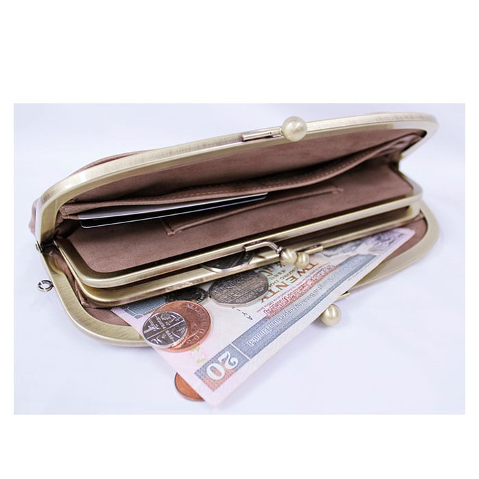 ・がま口×レトロ♪Lafiel(ラフィール)から、ナチュラル合皮がま口長財布が登場。
