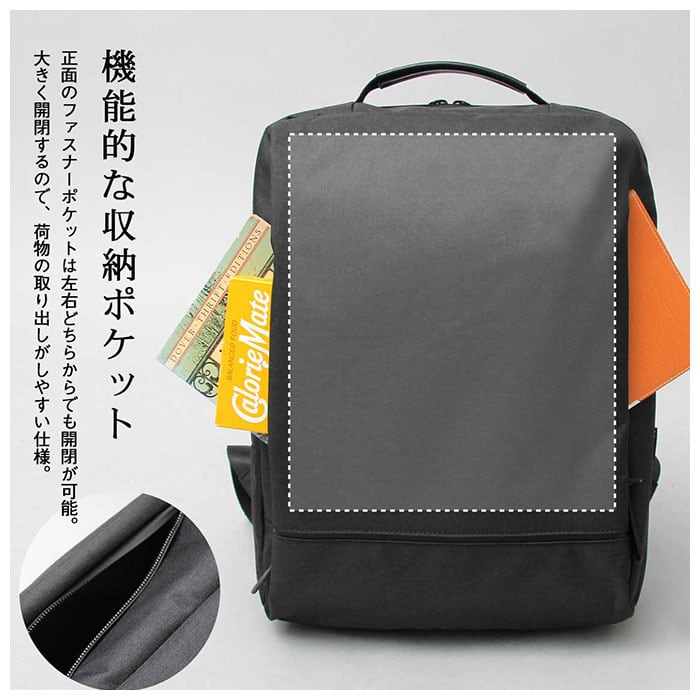 ・表生地は、はっ水加工を施したPVCポリエステルタイプ(BLACK、GRAY)と、シックなフェイクレザータイプ(BLACK-A)からチョイス可能。