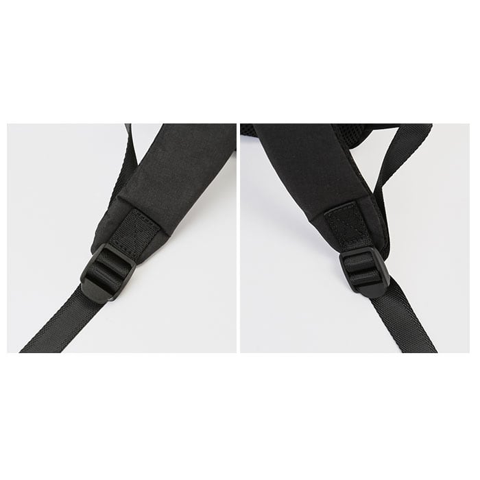 ・バックパック背面とショルダーベルト裏側には、通気性のよいメッシュ素材を採用。長時間背負うときでもサラッと快適な使い心地。