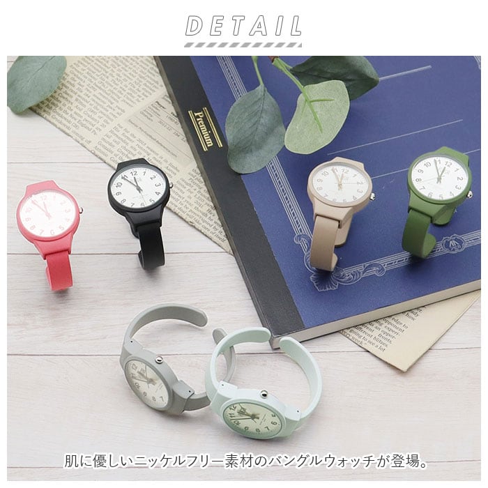 ・肌に優しいニッケルフリー素材のバングルウォッチが登場。
