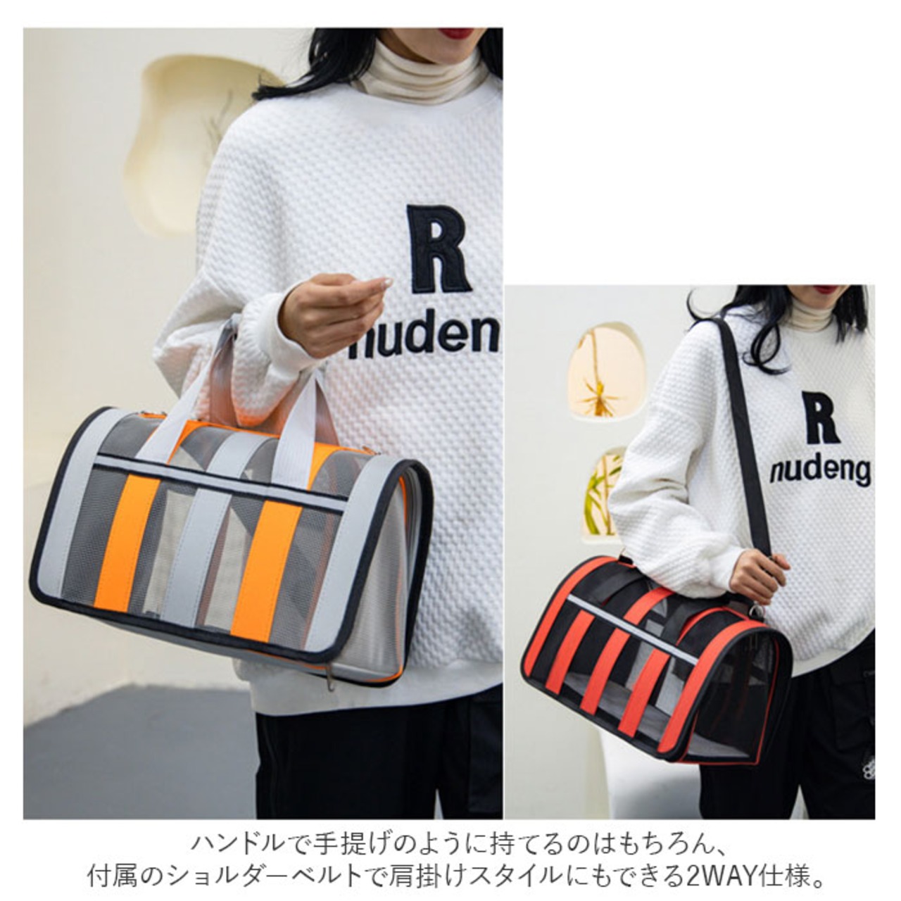 ・ふんわり軽量&コンパクトな手提げ型デザイン!ネコちゃんとのお出掛けが楽ちんな「2WAYペットキャリー」。