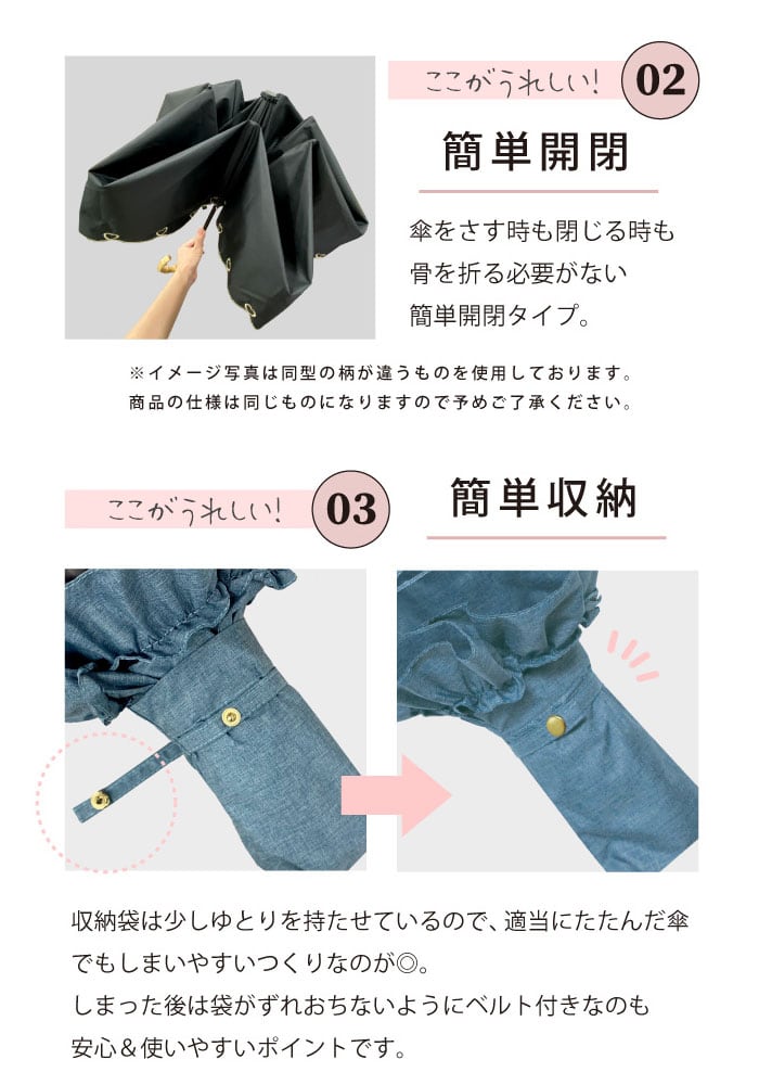 ・傘骨を手で折らずに簡単開閉!pinktrick(ピンクトリック)の晴雨兼用・折りたたみ傘。