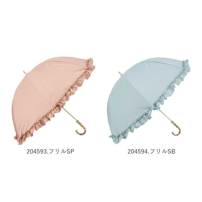 ・持ち手はおしゃれなバンブー素材のハンドルを採用。(※カラーにより、傘生地裾のデザインとハンドルの色が異なります)