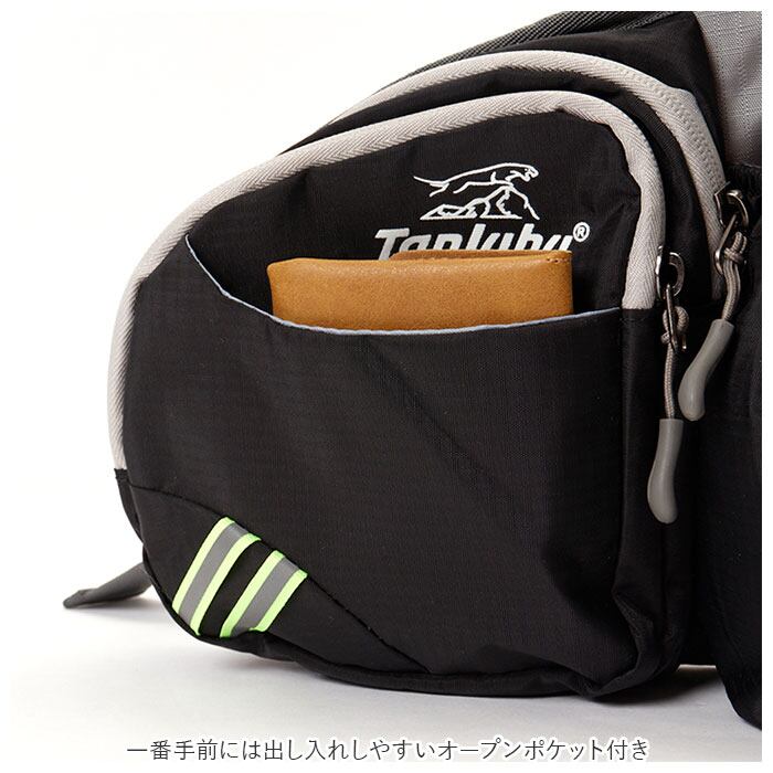 ・バッグのボティははっ水加工生地&フロントファスナーには止水ファスナーを採用で急な通り雨でも慌てなず安心。(※完全防水仕様ではありません。)