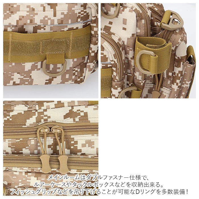 ・釣りのスタイルなどに応じて「ショルダーバッグ」、「ウエストバッグ」、「手提げバッグ」の3タイプの使い方が出来るのがGOOD!