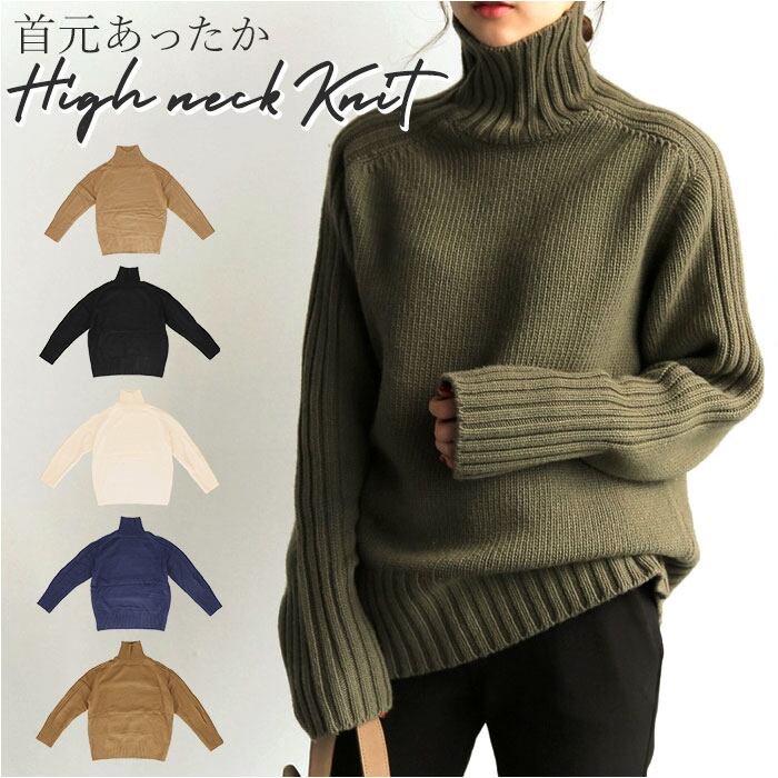 ・首元あったか♪ハイネックタイプ。顔周りもスッキリとした印象に。