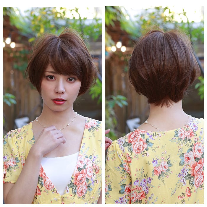 ・ネットで自毛をまとめたら、帽子のようにすっぽりとウィッグを被ってスタイリングするだけ!年齢問わずマッチする、ナチュラルなショートボブヘアが完成♪
