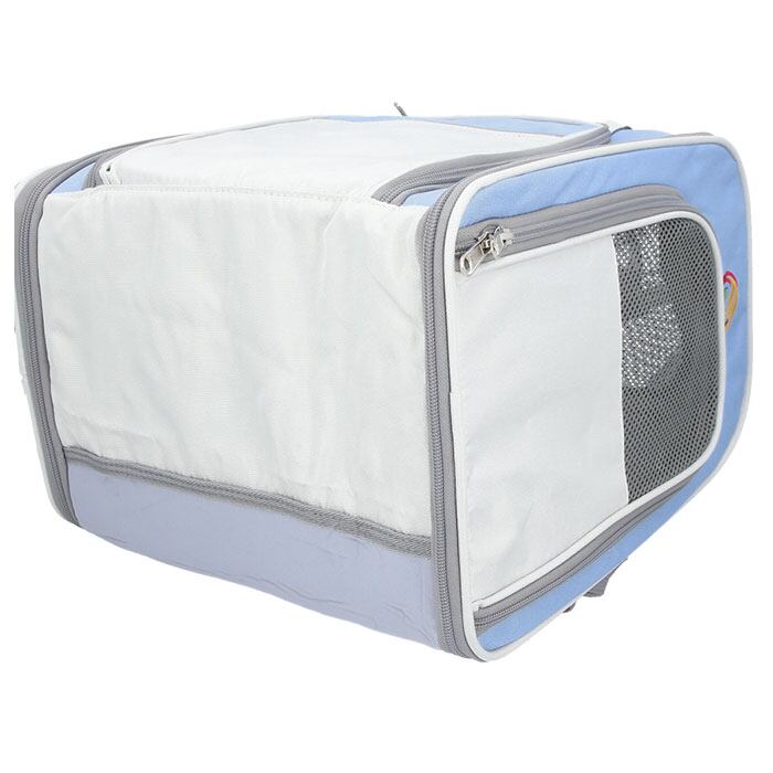 ・フロントのファスナーを開放すれば、外出先での休憩時や、自宅ではペットハウスとしても使える「拡張ルーム」が出現!ペットがくつろげる広々設計で、ペットのストレスを軽減。