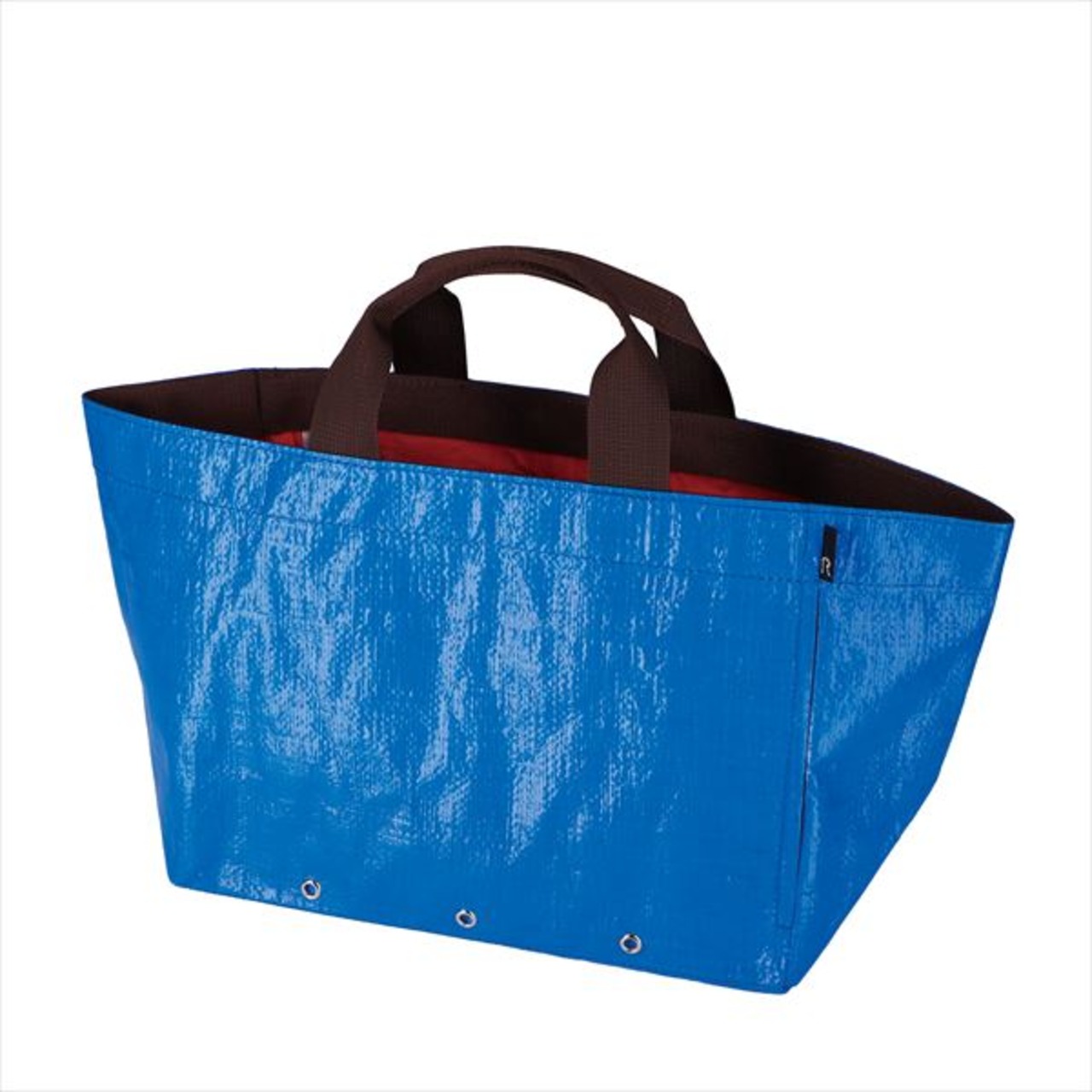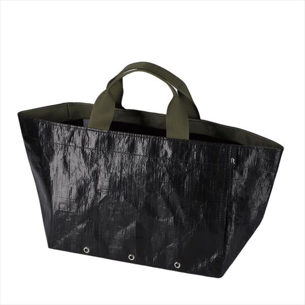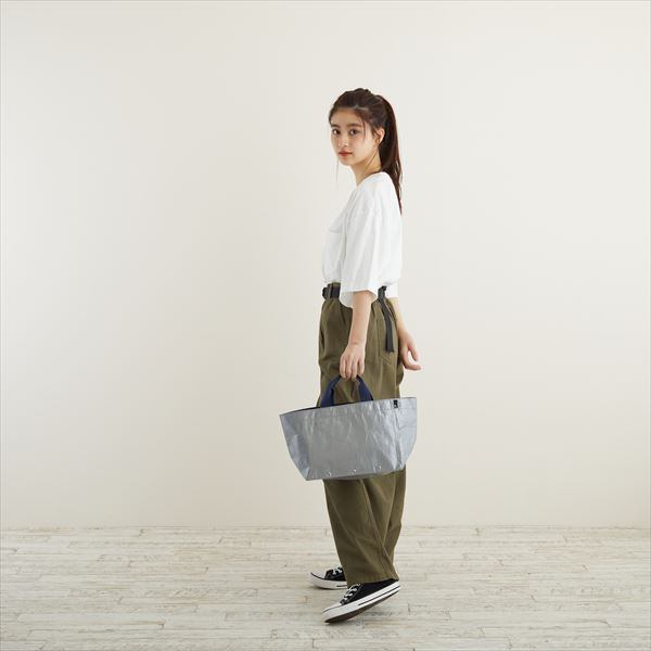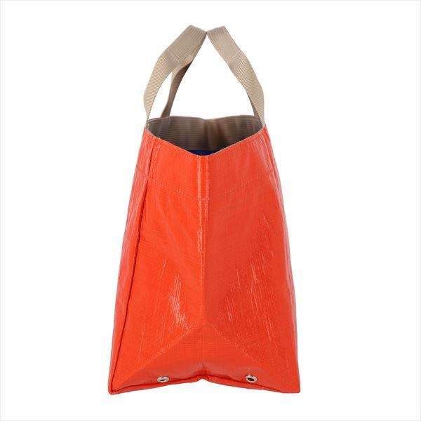 雨や泥で汚れても気にならないレジャーシート素材。外側ポケットには折りたたみ傘が入るサイズで下に3箇所穴が開いているので通気も確保。