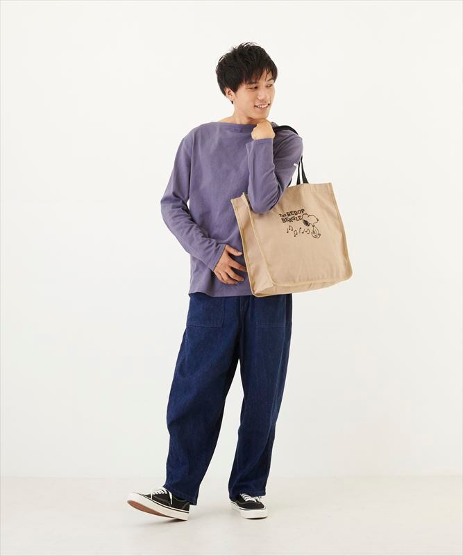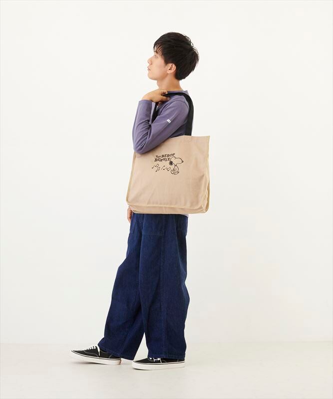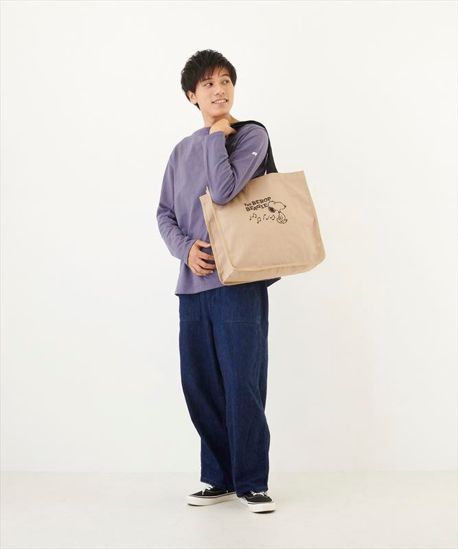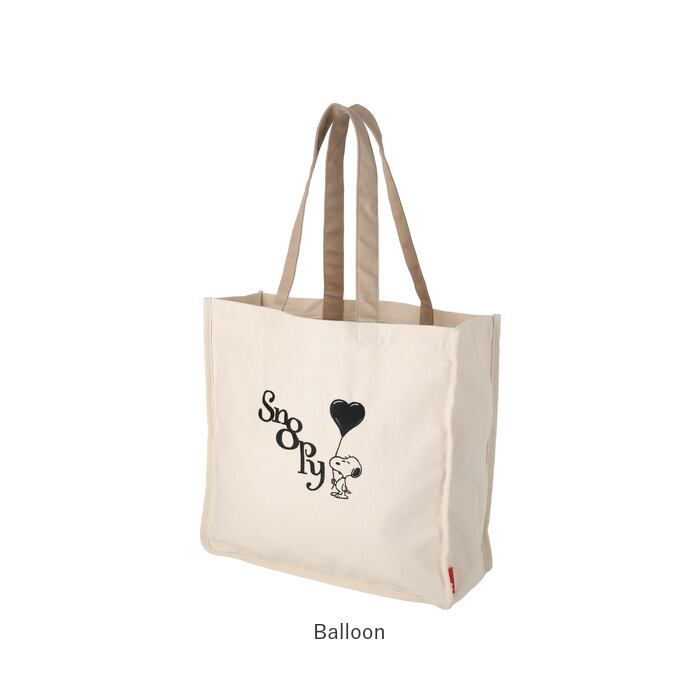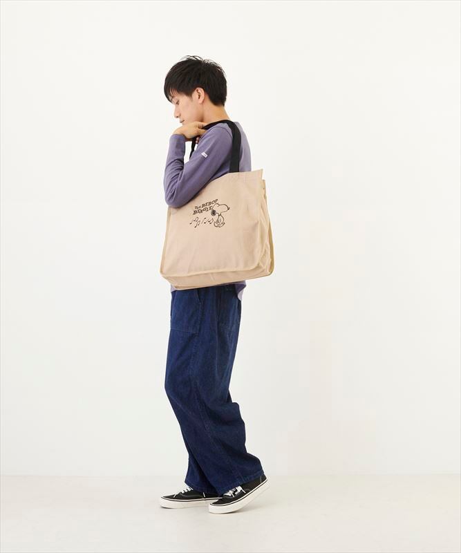 ・しっかりしたコットンキャンバス生地に、愛らしいスヌーピーの刺繍がされた大容量のトート。ブラックの刺繍が映えるキャンバスカラーです。軽くてたっぷり荷物が入るので、荷物が多くなりがちなシーンにも大活躍!
