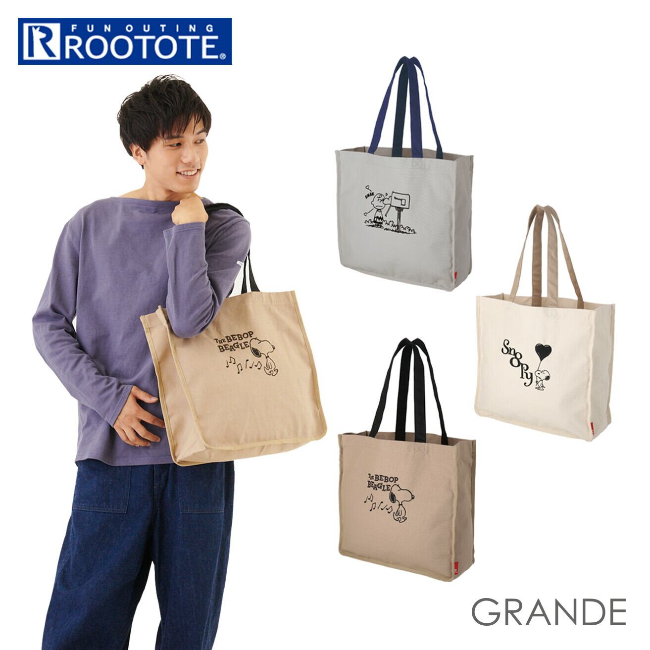 ルートート rootote スヌーピー 8223 通販 ブランド レディース トートバッグ グランデ キャンバス 布 コットン ピーナッツ ショルダーバッグ おしゃれ 大人 かわいい 大きめ 大容量 手提げ バッグ キャラクター グッズ