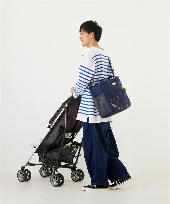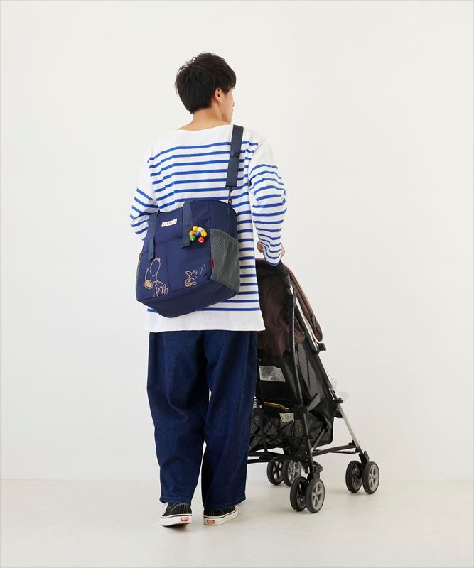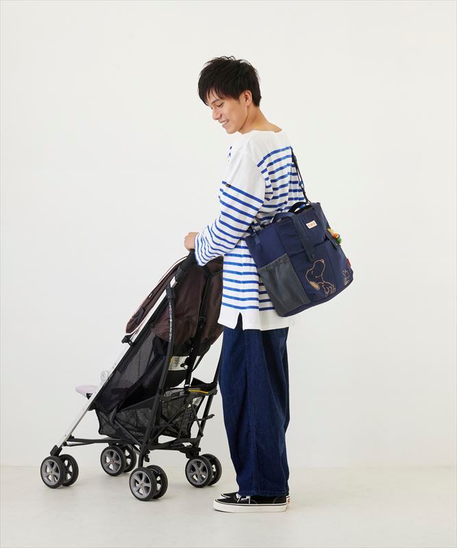 ・赤ちゃんとパパ&ママの楽しいお出かけ。スヌーピーを大きくプリント!楽しんで持つことができるデザインです。