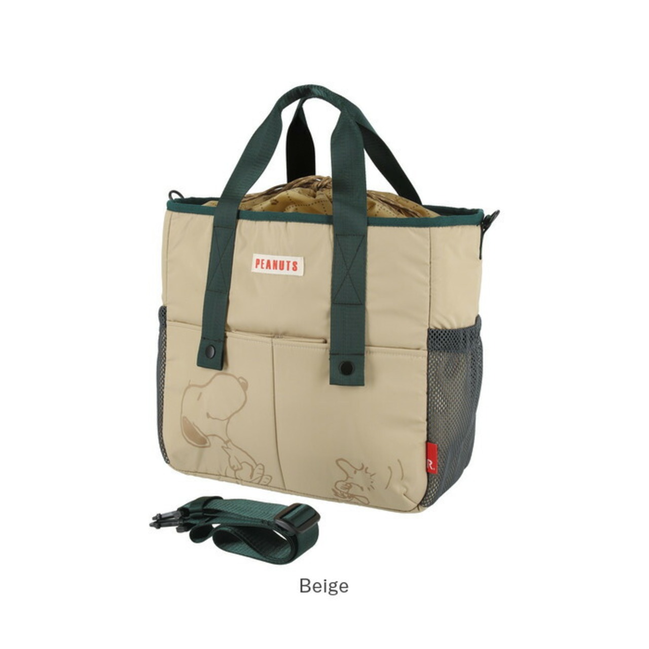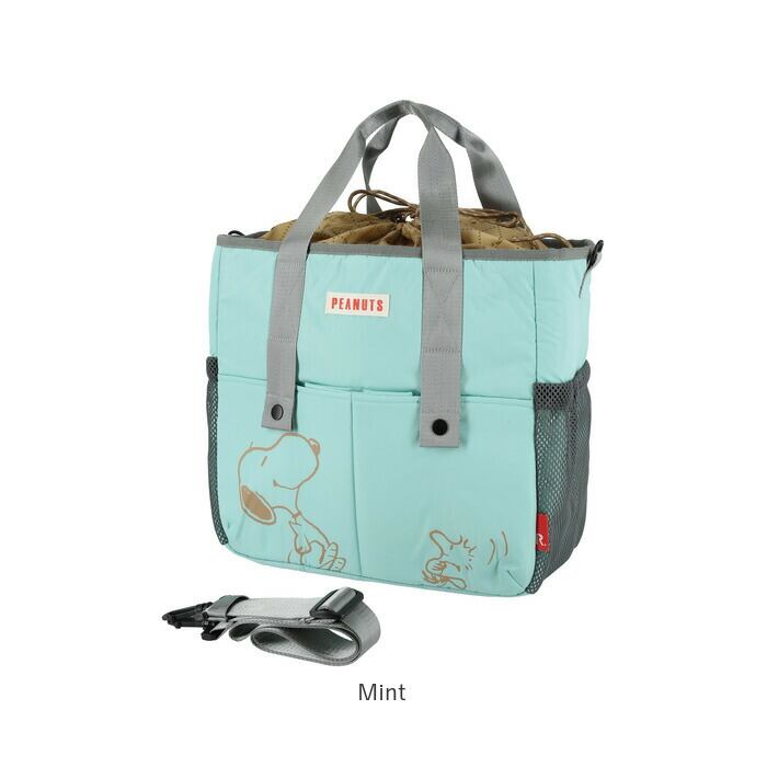 ・シンプルなカラーとメッシュの配色。内側は遊び心があふれるスヌーピーの総柄です。