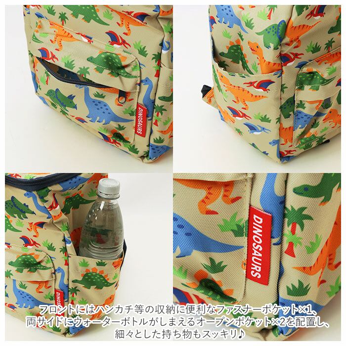 ・フロントにはハンカチやティッシュの収納に便利なファスナーポケット×1、両サイドに折りたたみ傘やウォーターボトルがちょこんとしまえるオープンポケット×2を配置し、細々とした持ち物もスッキリ♪