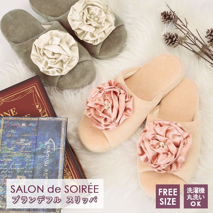 スリッパ 洗える かわいい 通販 花柄 トイレ トイレタリー トイレ用 室内履き SDS サロンドソワレ ウォッシャブル プランデフル 華やか シック 素敵 立体的 大きな 花 ギフト おしゃれ プレゼント