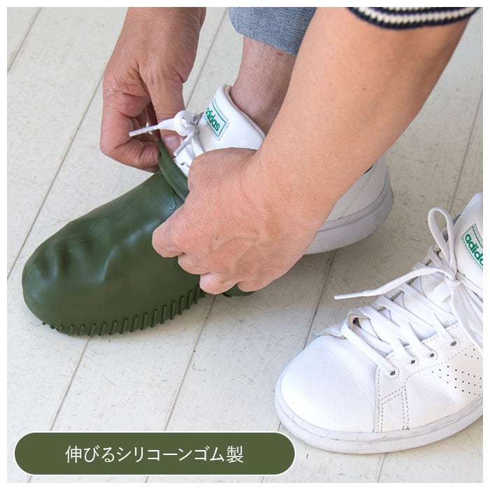 ・伸びるシリコーンゴム製で、靴にぴったりフィットする仕様。底面に滑り止め付き!