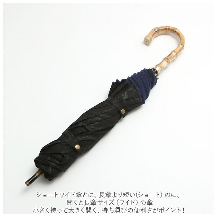 ・ショートワイド傘とは、長傘より短い(ショート)のに、開くと長傘サイズ(ワイド)の傘。小さく持って大きく開く、持ち運びの便利さがポイント!