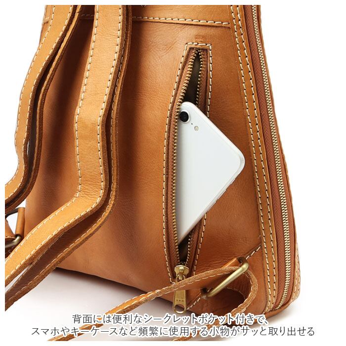 ・リュック背面には、スマホやキーケースなど頻繁に使用する小物がサッと取り出せる、便利なシークレットポケット付き。
