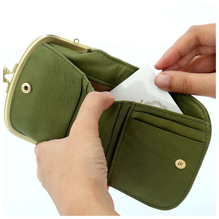 ・コロンとした可愛らしいフォルムにゴールドのがま口が上品さをプラス。