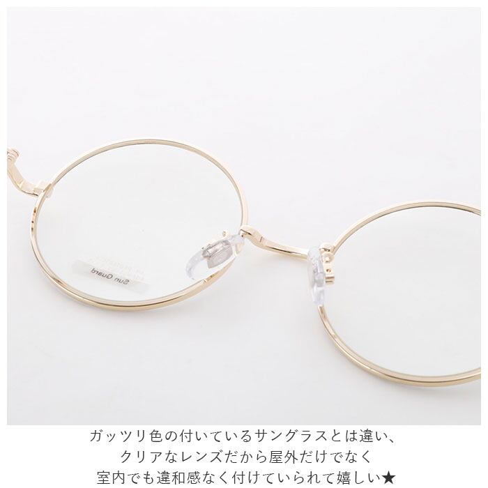 サングラス レディース uvカット クリア 通販 おしゃれ シンプル ラウンドフレーム かわいい 伊達メガネ レトロ 紫外線対策 UVカット率99% 丸眼鏡 ラウンドメガネ プラスチックレンス 金属フレーム メガネ ファッション小物 眼鏡