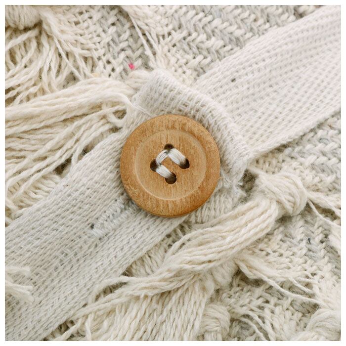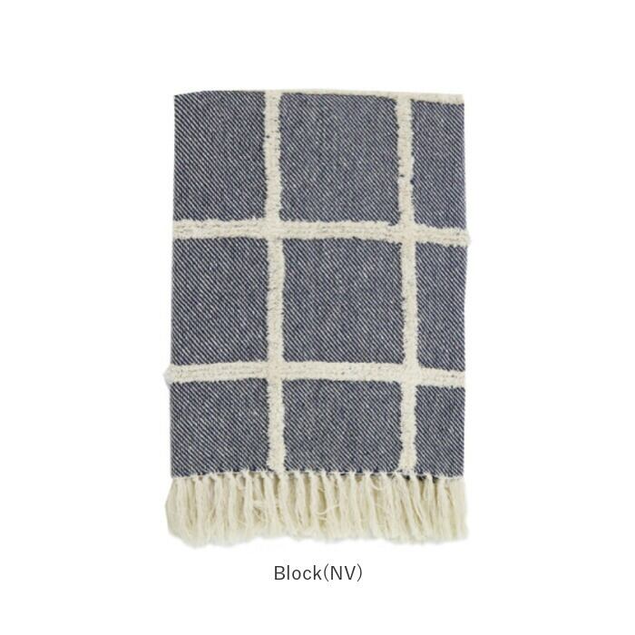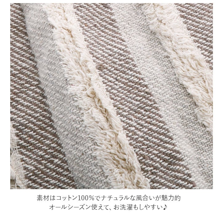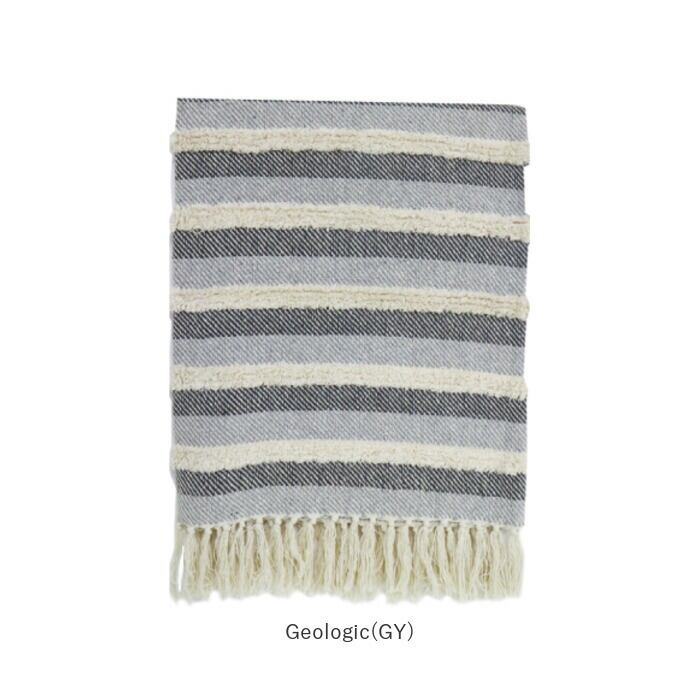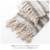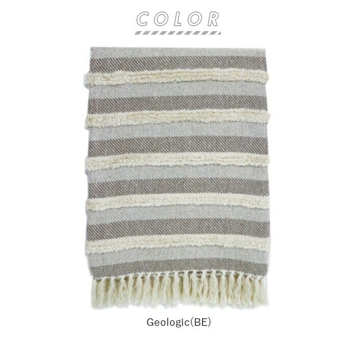 ・少し厚手の凝った織り模様。両端のフリンジやパイル編みのデザインが、ナチュラルなテイストに高級感をプラス。