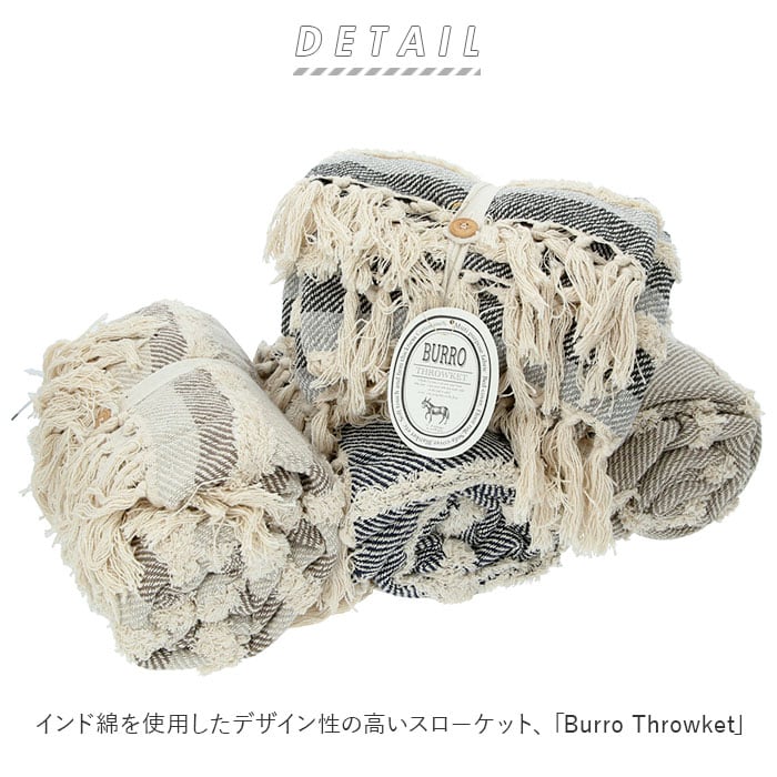 ・インド綿を使用したデザイン性の高いスローケット、「Burro Throwket」