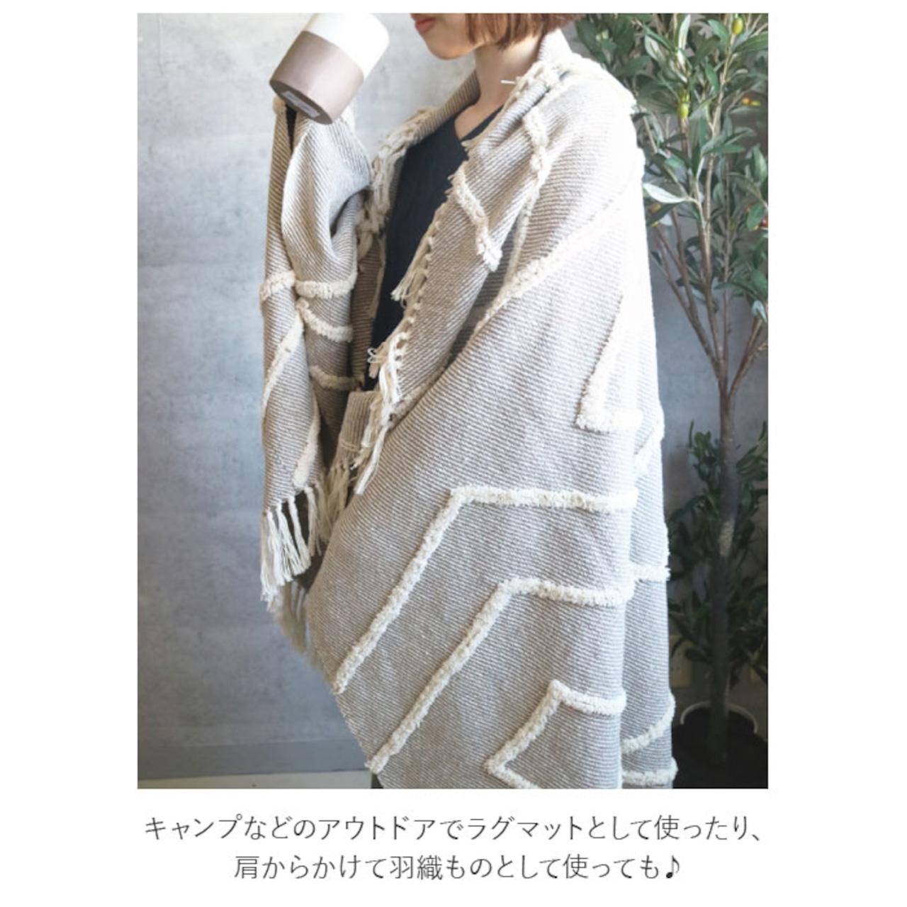 ・キャンプなどのアウトドアでラグマットとして使ったり、肩からかけて羽織ものとして使っても♪