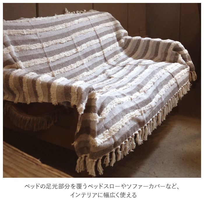・ベッドの足元部分を覆うベッドスローやソファーカバーなど、インテリアに幅広く使える。