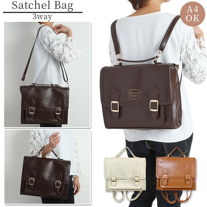 リュック レディース おしゃれ 通販 大人 かわいい 通勤 通学 フェイク レザー 3way ショルダーバッグ 3wayバッグ 手提げ シンプル a4 肩掛け 斜めがけ キャメル ブラウン アイボリー カリーノ サッチェルバッグ Sunny Side サニーサイド