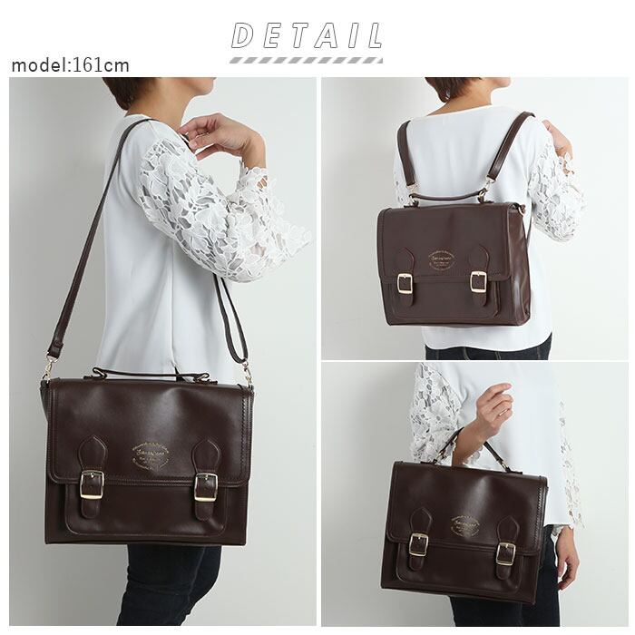 ・手持ちのハンドバッグとしてはもちろん、取り外し可能なストラップをつけてショルダーやリュックにもなる3WAY仕様の優れもの。