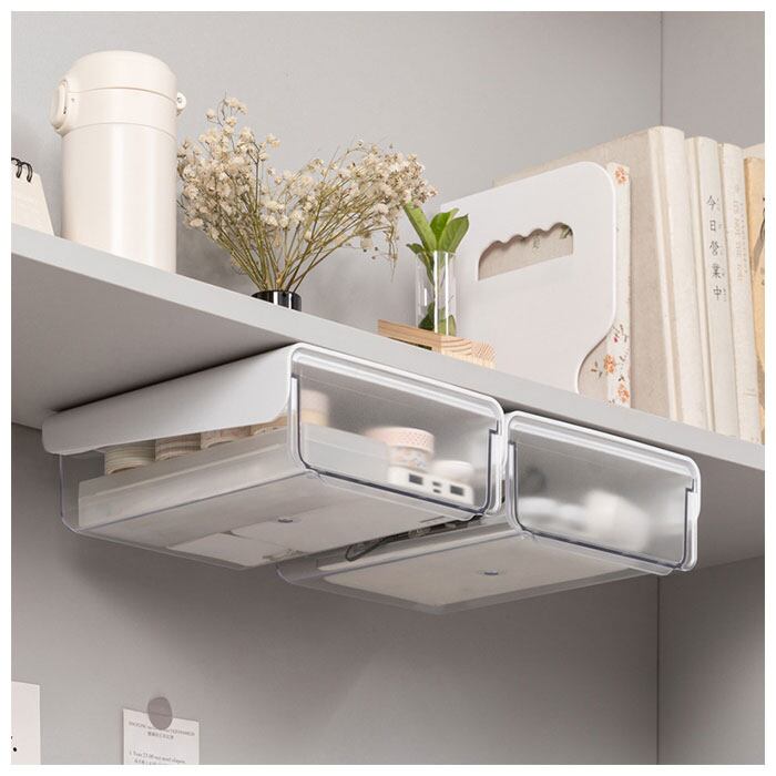・パソコンデスクやダイニングテーブル、キッチンキャビネットの棚下などに、便利な引き出しが増設できる小さな収納ボックス。