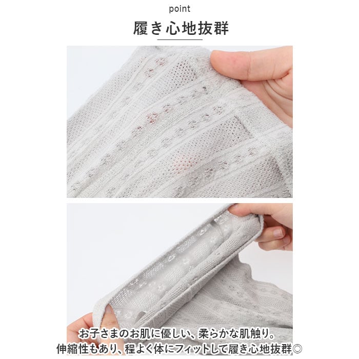 ・お子さまのお肌に優しい、柔らかな肌触り。伸縮性もあり、程よく体にフィットして履き心地抜群◎