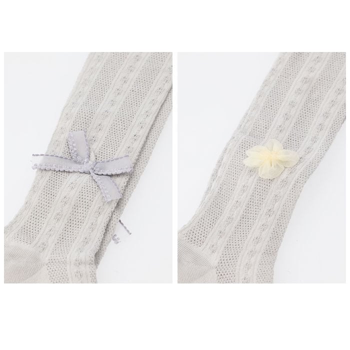 透かし柄タイツ リボン 花 yklacetights