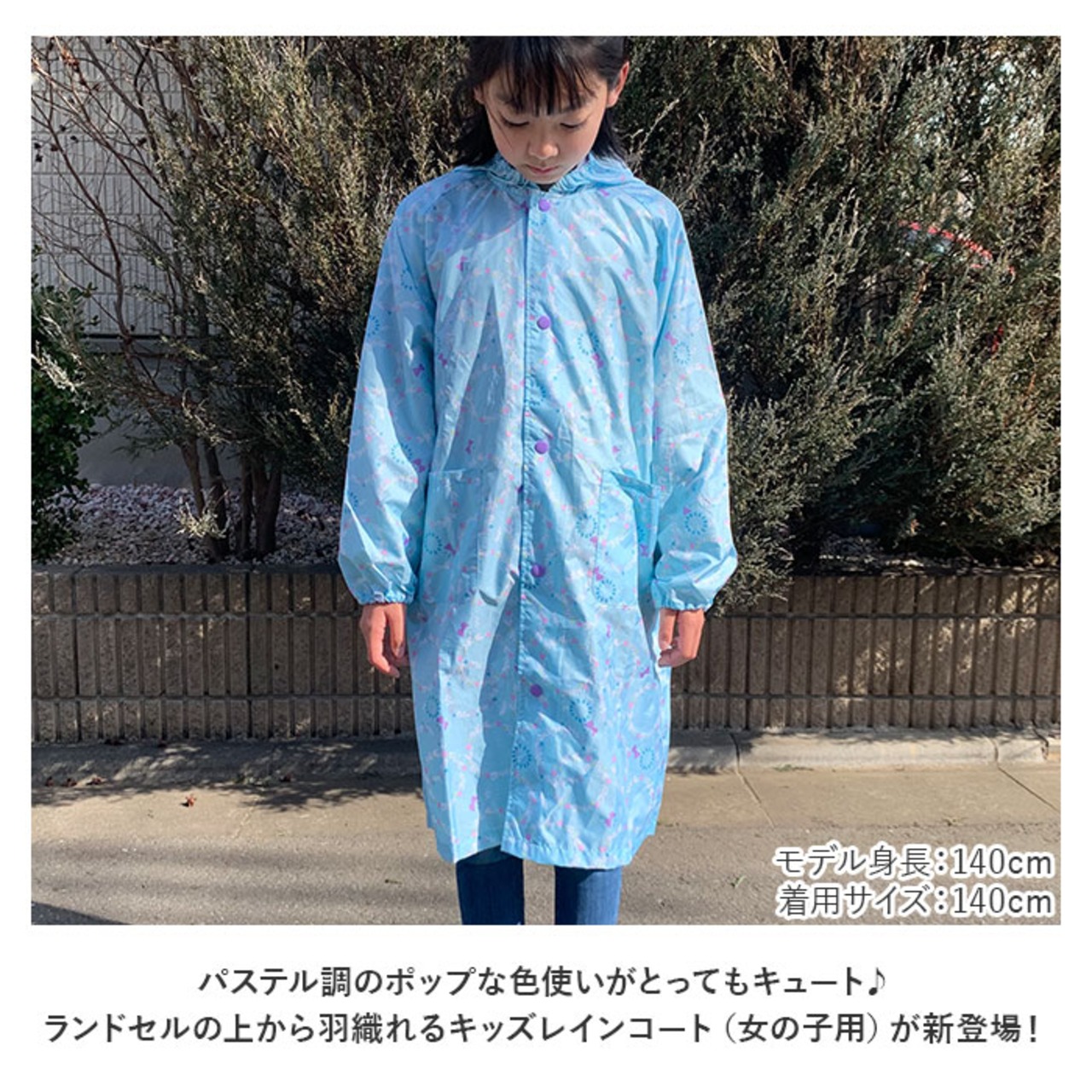 ・パステル調のポップな色使いがとってもキュート♪ランドセルの上から羽織れるキッズレインコート(女の子用)が新登場!