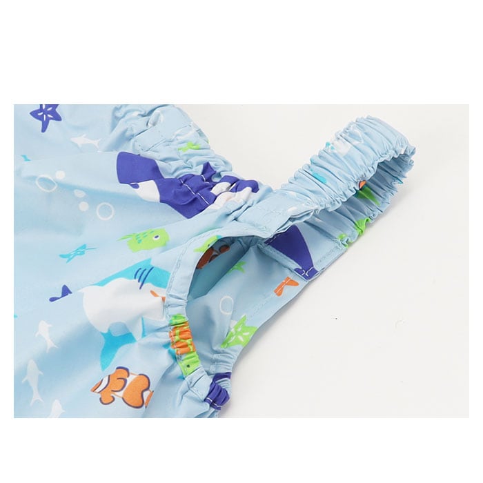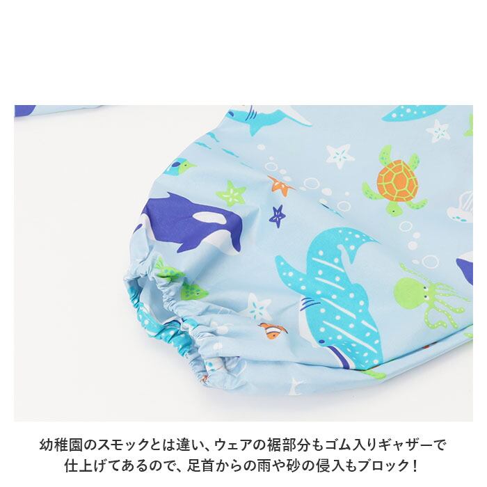 ・幼稚園のスモックとは違い、ウェアの裾部分もゴム入りギャザーで仕上げてあるので、足首からの雨や砂の侵入もブロック!