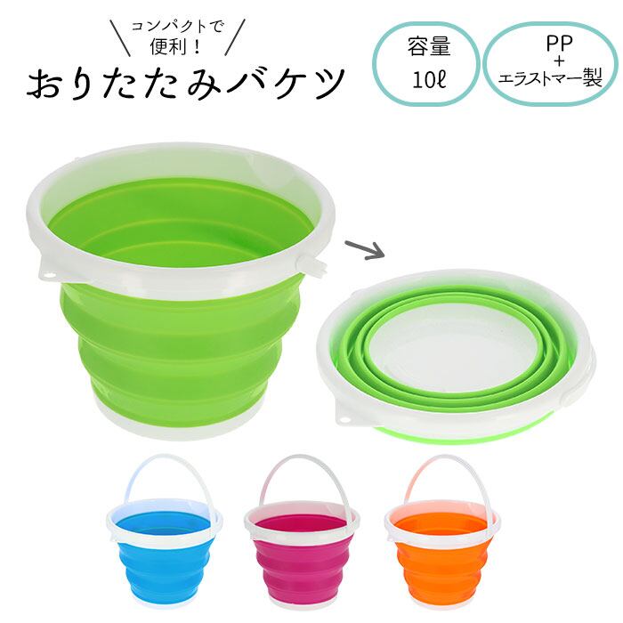 ・ペタンコに折りたためるから省スペース!収納場所に困らない、便利なバケツ(容量10L)が新登場!