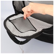・タブレットなどの収納に便利なクッションポケット×1、ファスナーポケット×1、中に入れる物の大きさに合わせて伸びるモズポケット×1を装備!