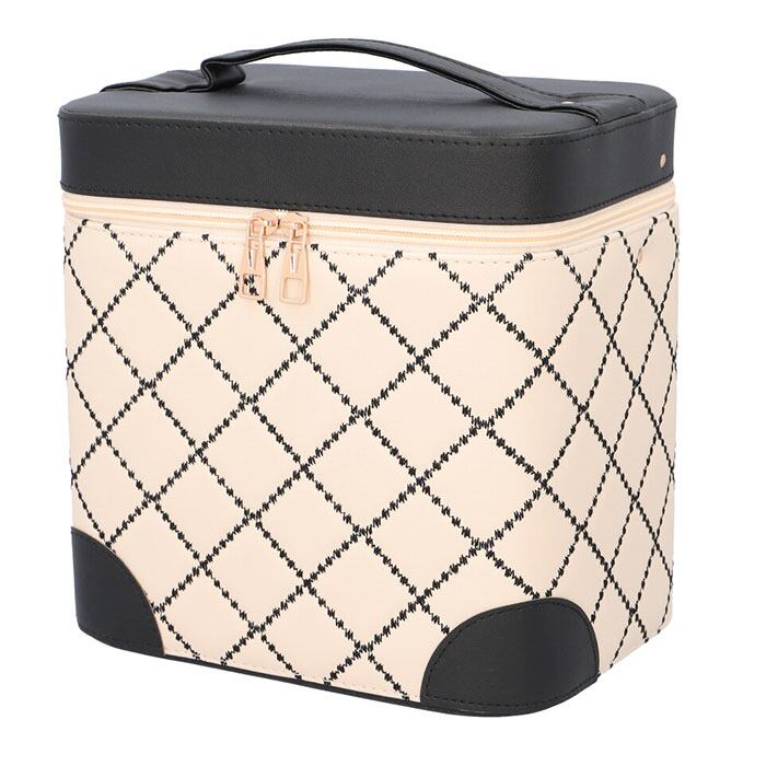 ・立体的で見やすいコスメトレイ付き♪キルティングデザインが大人可愛いシンプル・メイクボックスが新登場。