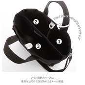 ・手持ちのコンパクトなトートとしてはもちろん、取り外し可能なショルダーストラップで肩掛けにも出来る2WAY仕様。